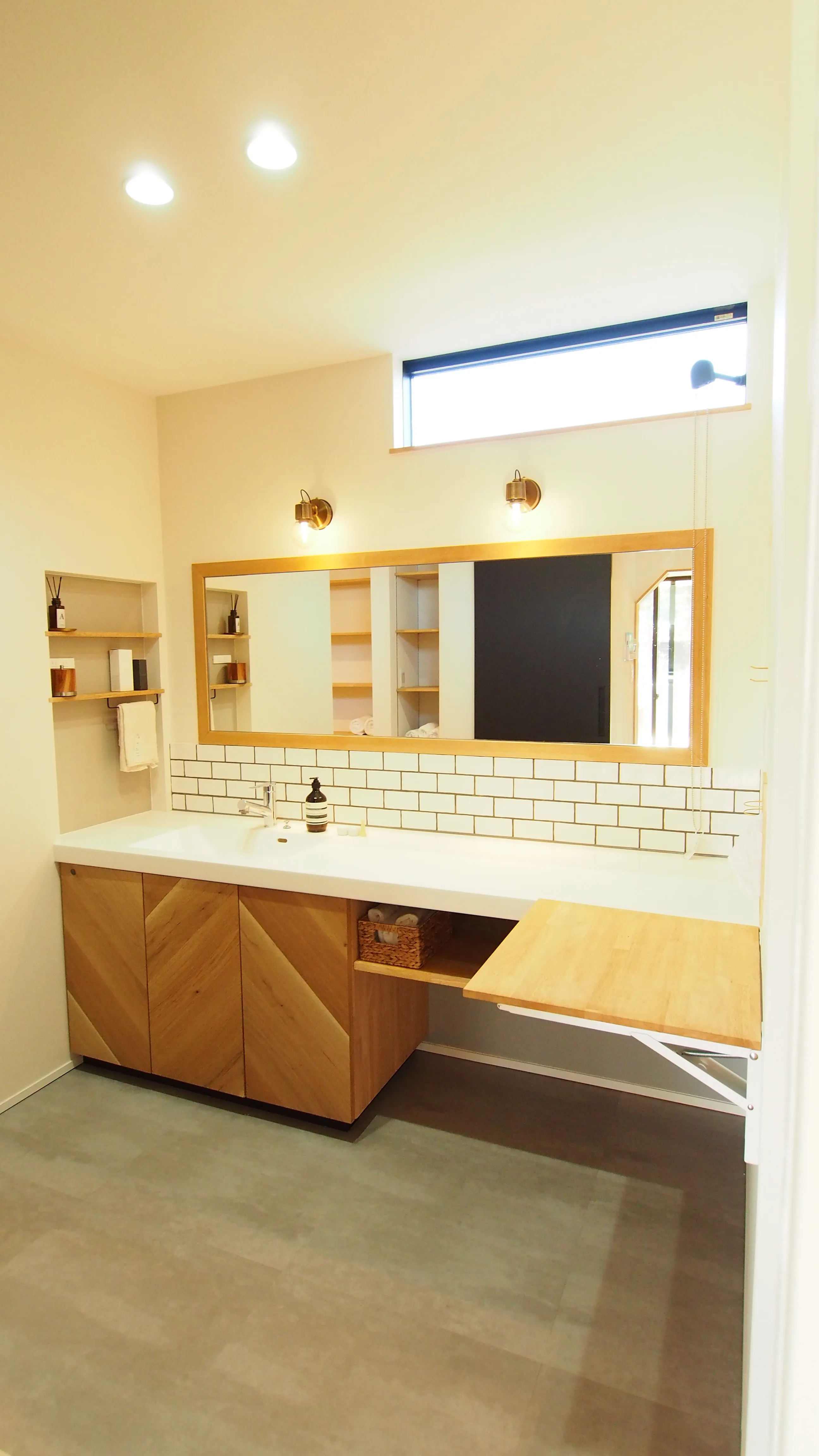 帰宅後すぐに手洗いできる、オシャレと機能性を兼ね備えたコンパクトな洗面台。