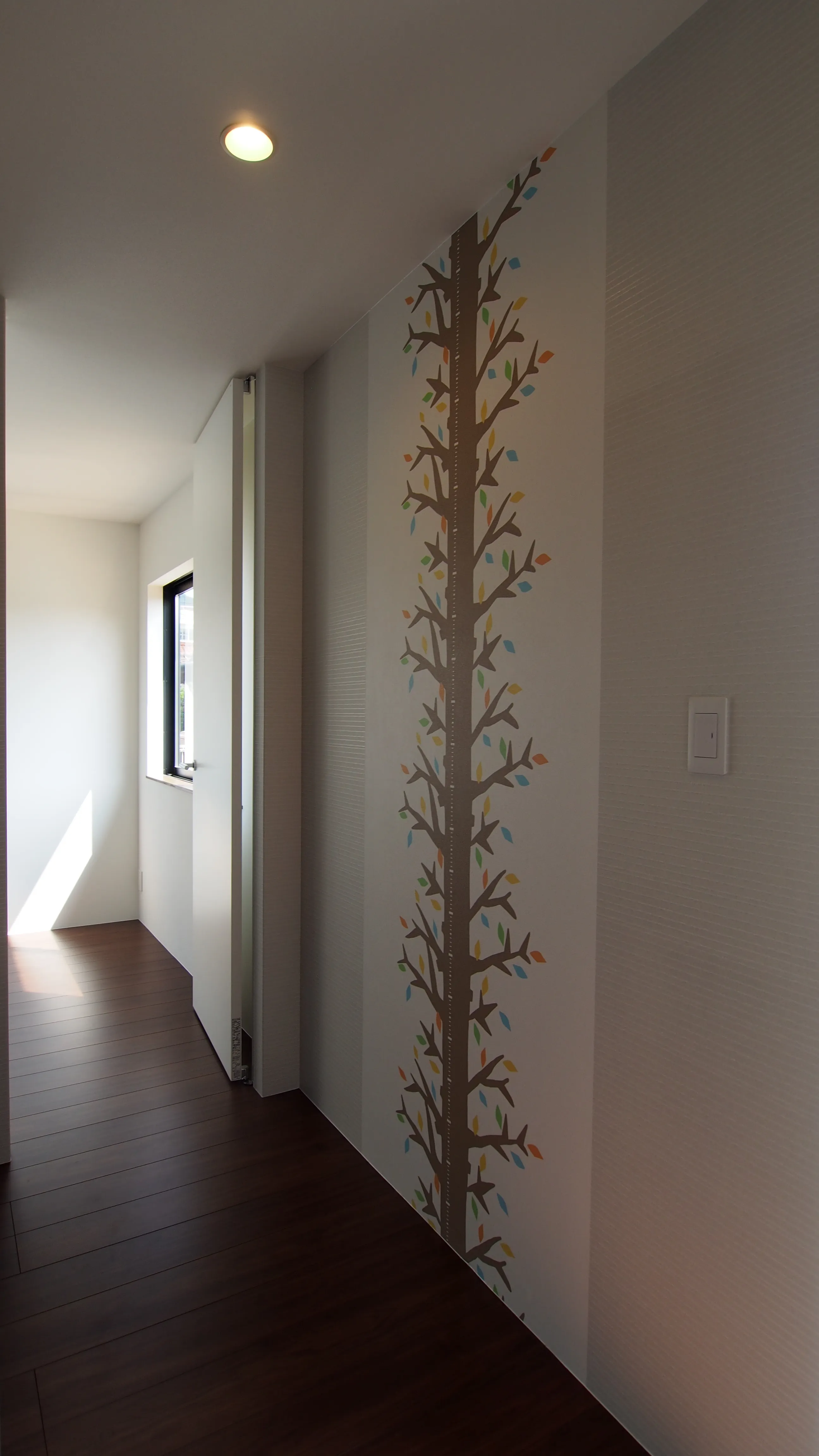 -歴史- 小さなこどもたちと過ごした時の流れを記録していく楽しみ。背丈の計れる壁紙で家族の成長を祝う。