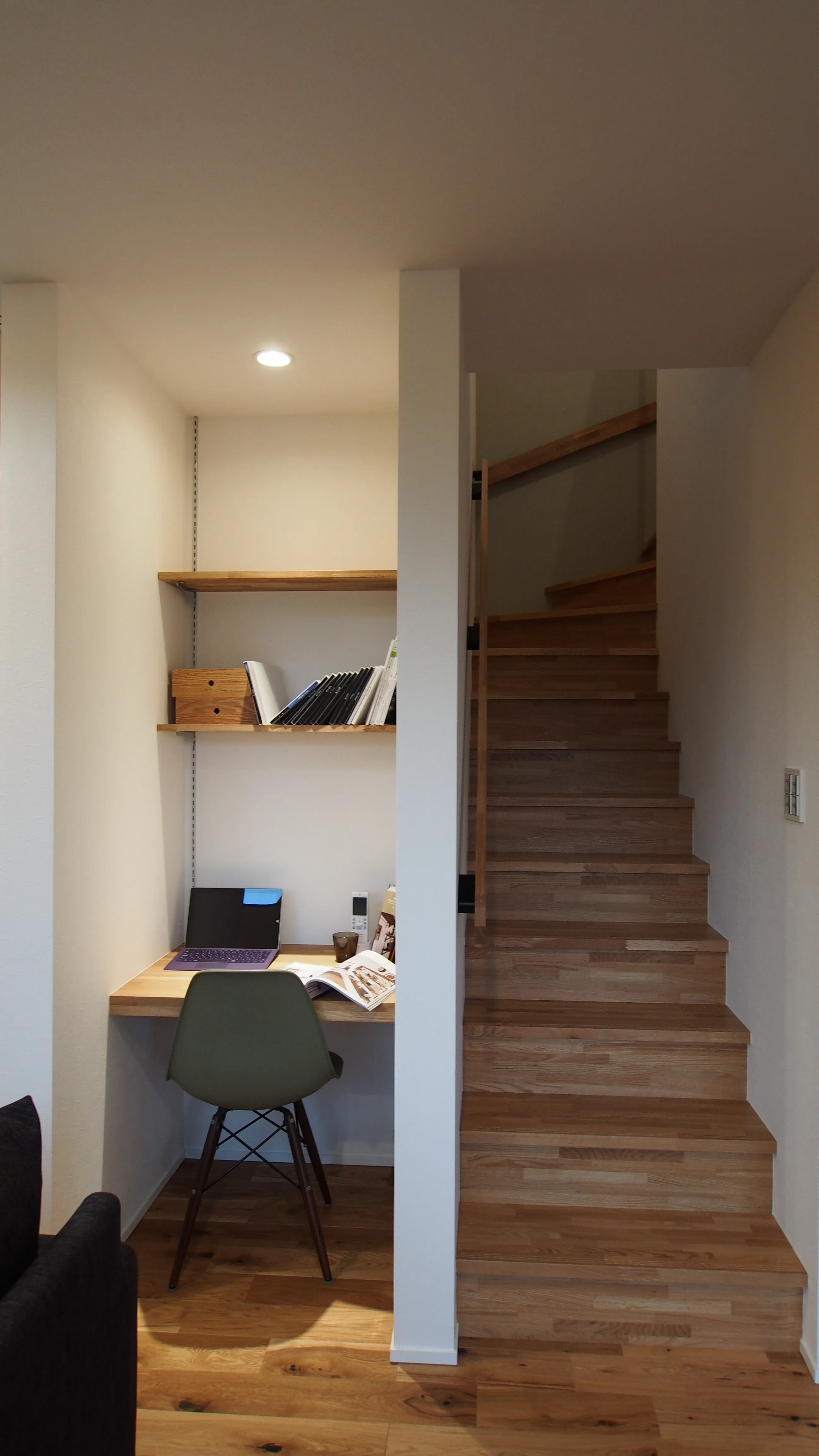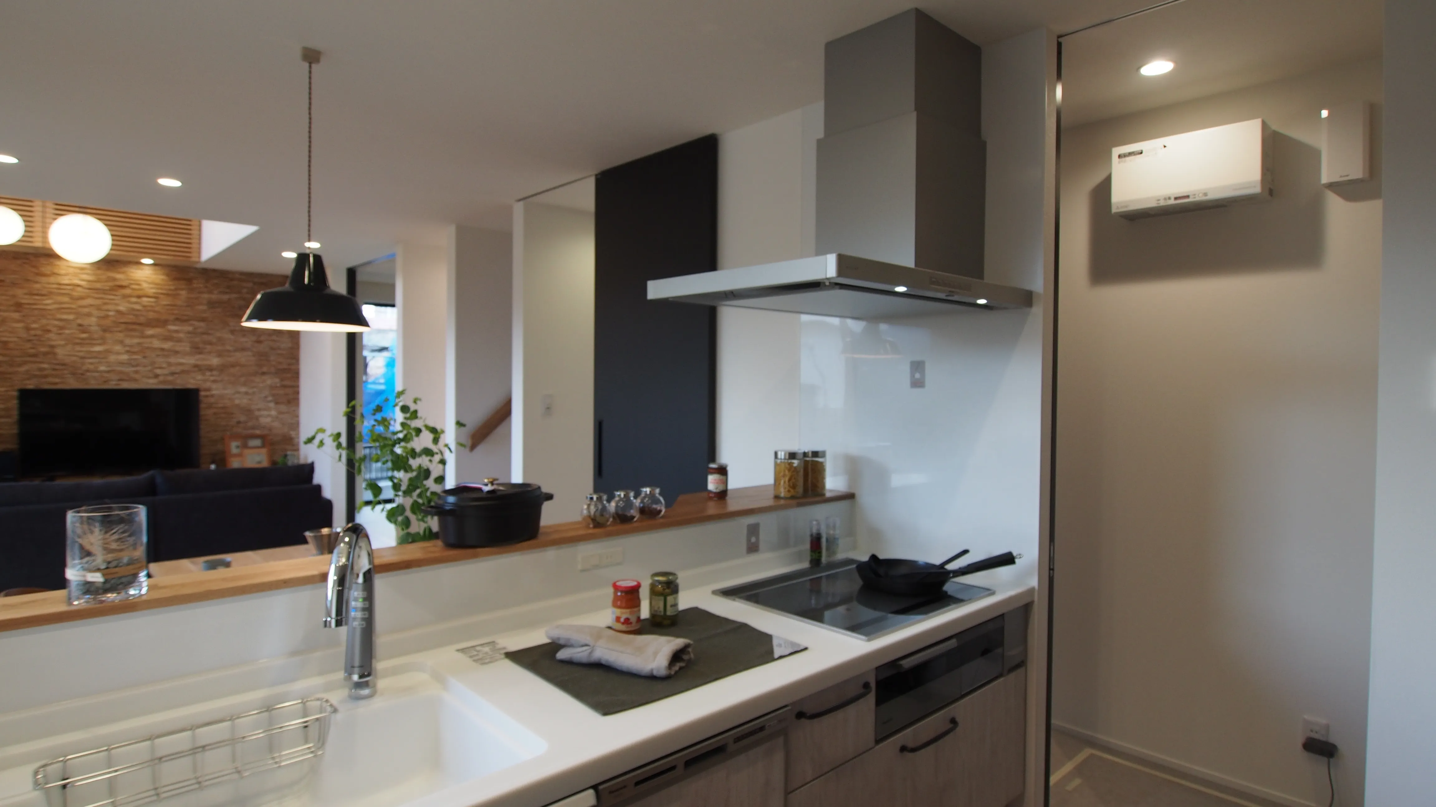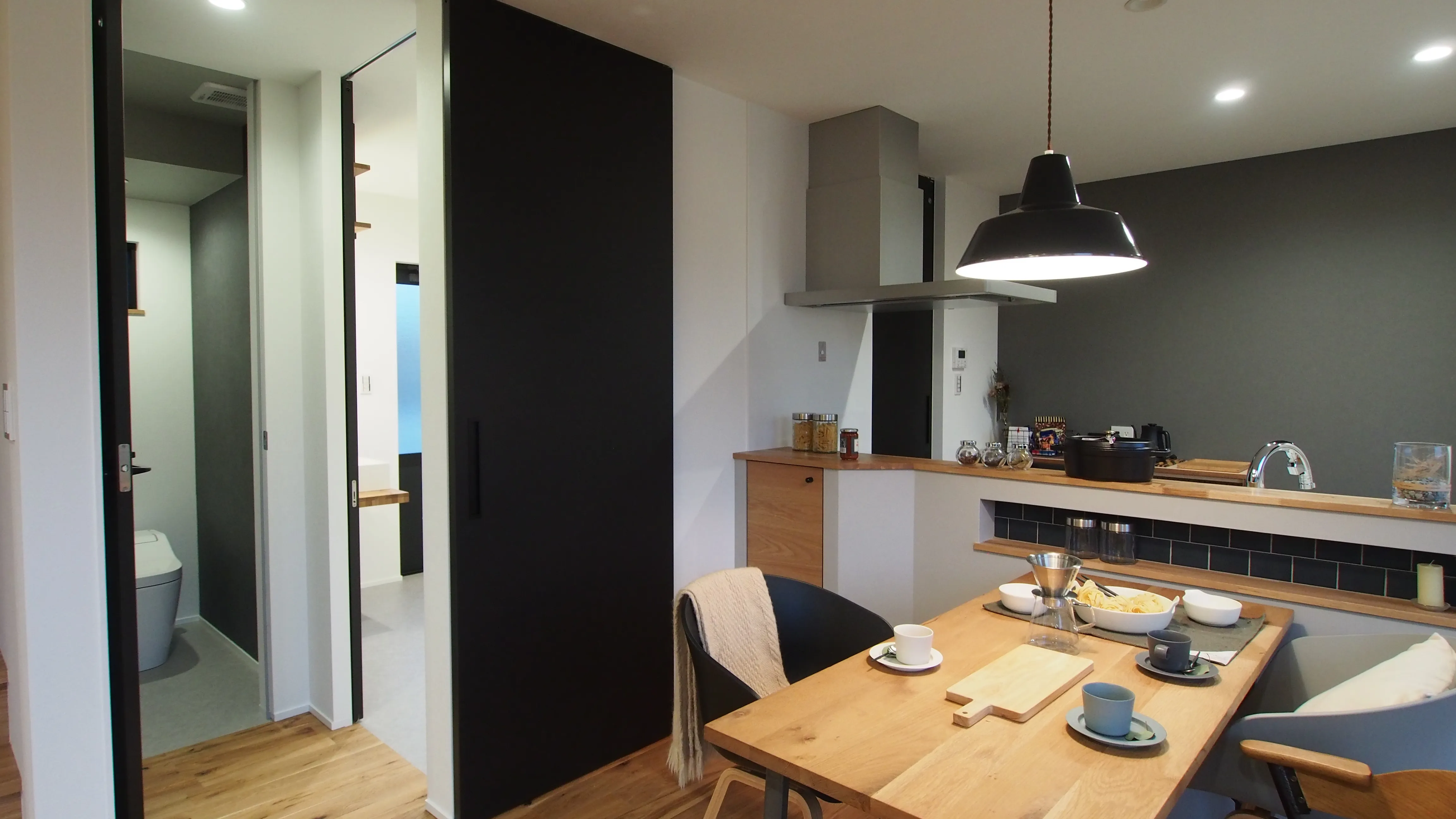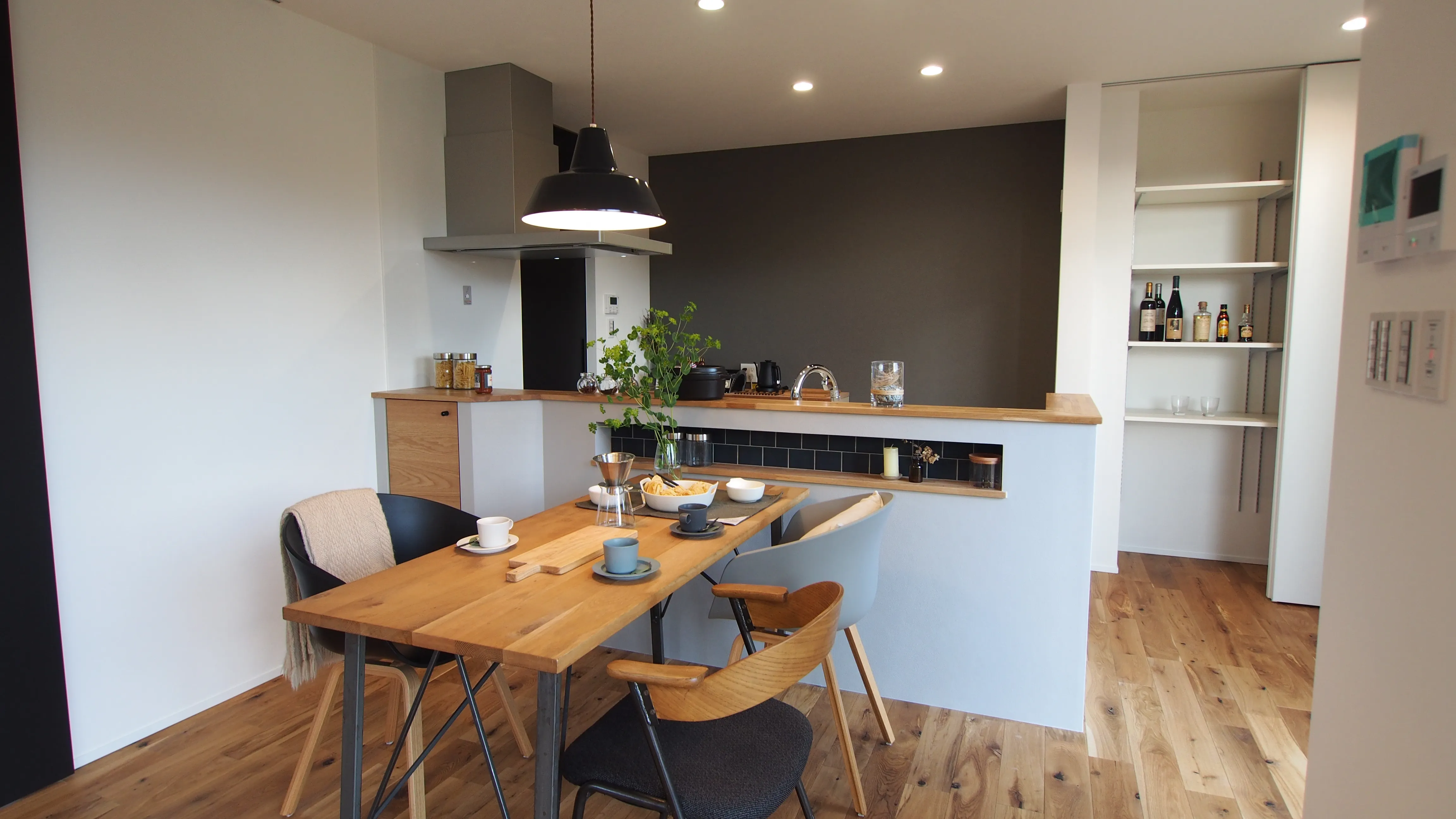 スマートな暮らしぶりを反映したコンパクトな空間に塗り壁の外装や無垢のフローリング、ウッドタイル、高気密施工などディテールにこだわった豊かな暮らしを投影しました。