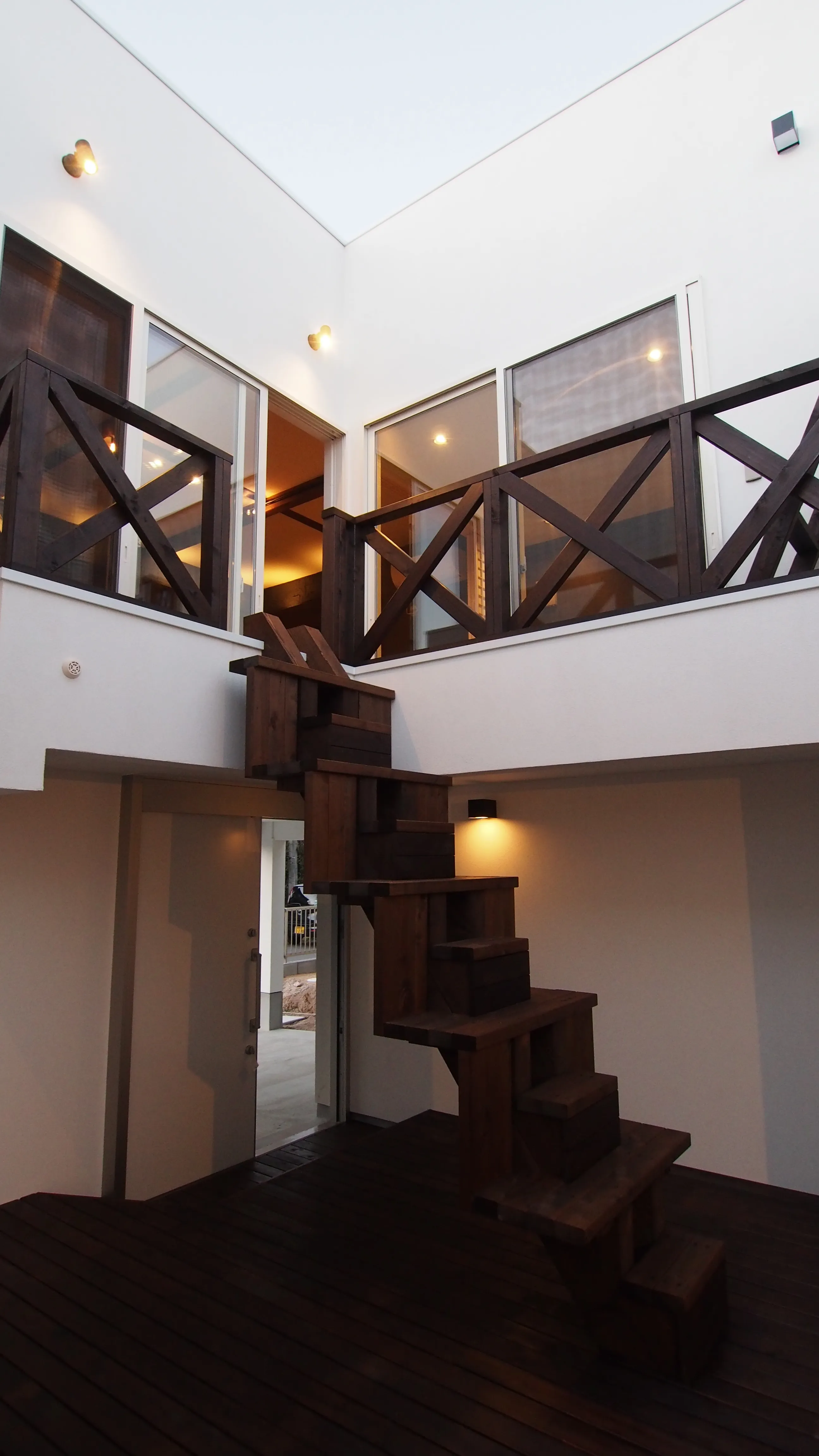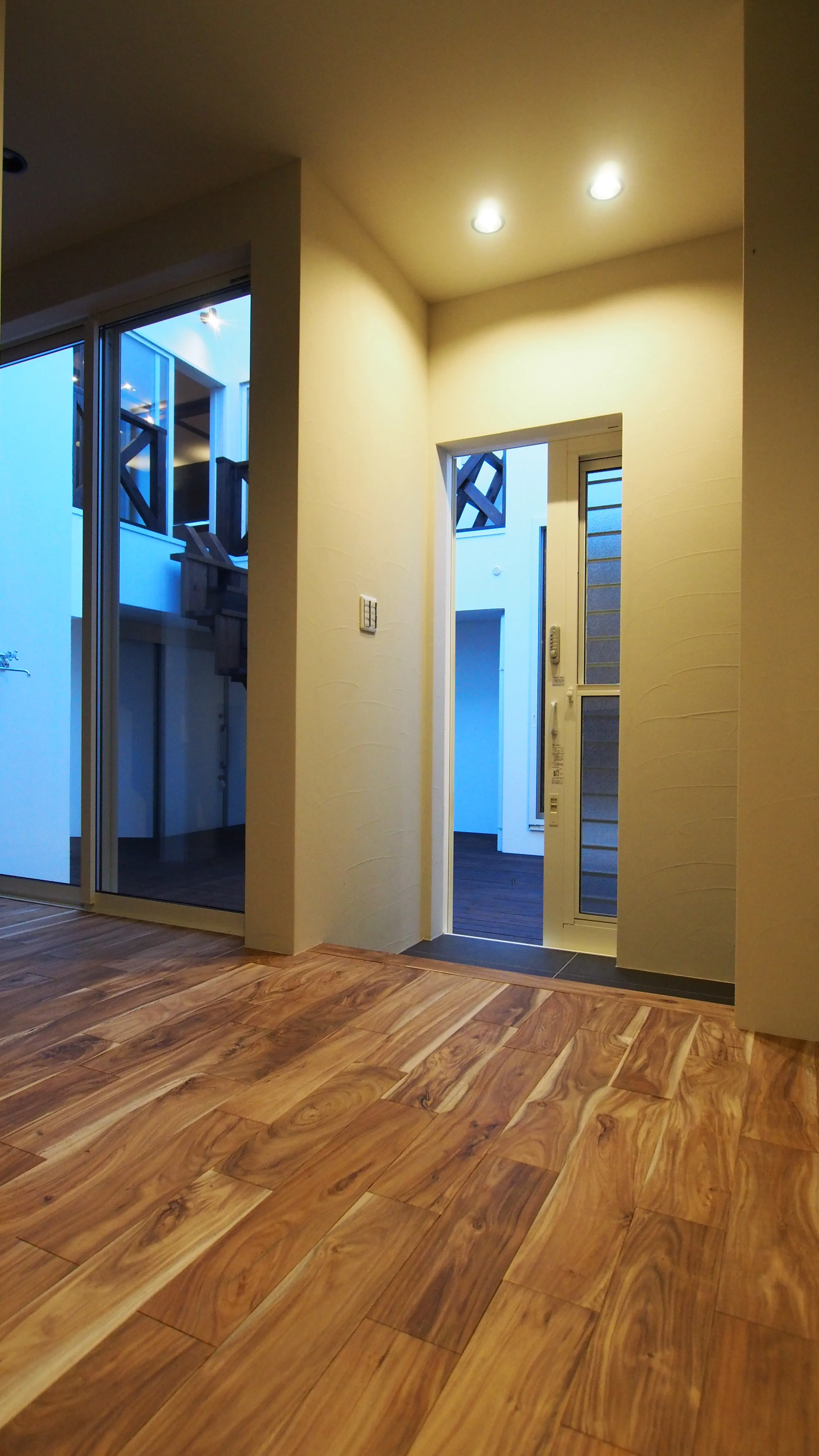 -中庭玄関- 駐車場から室内に導く中庭の出入り口。 中庭の階段から、そのままリビングへ上がることもできる愉しい動線。