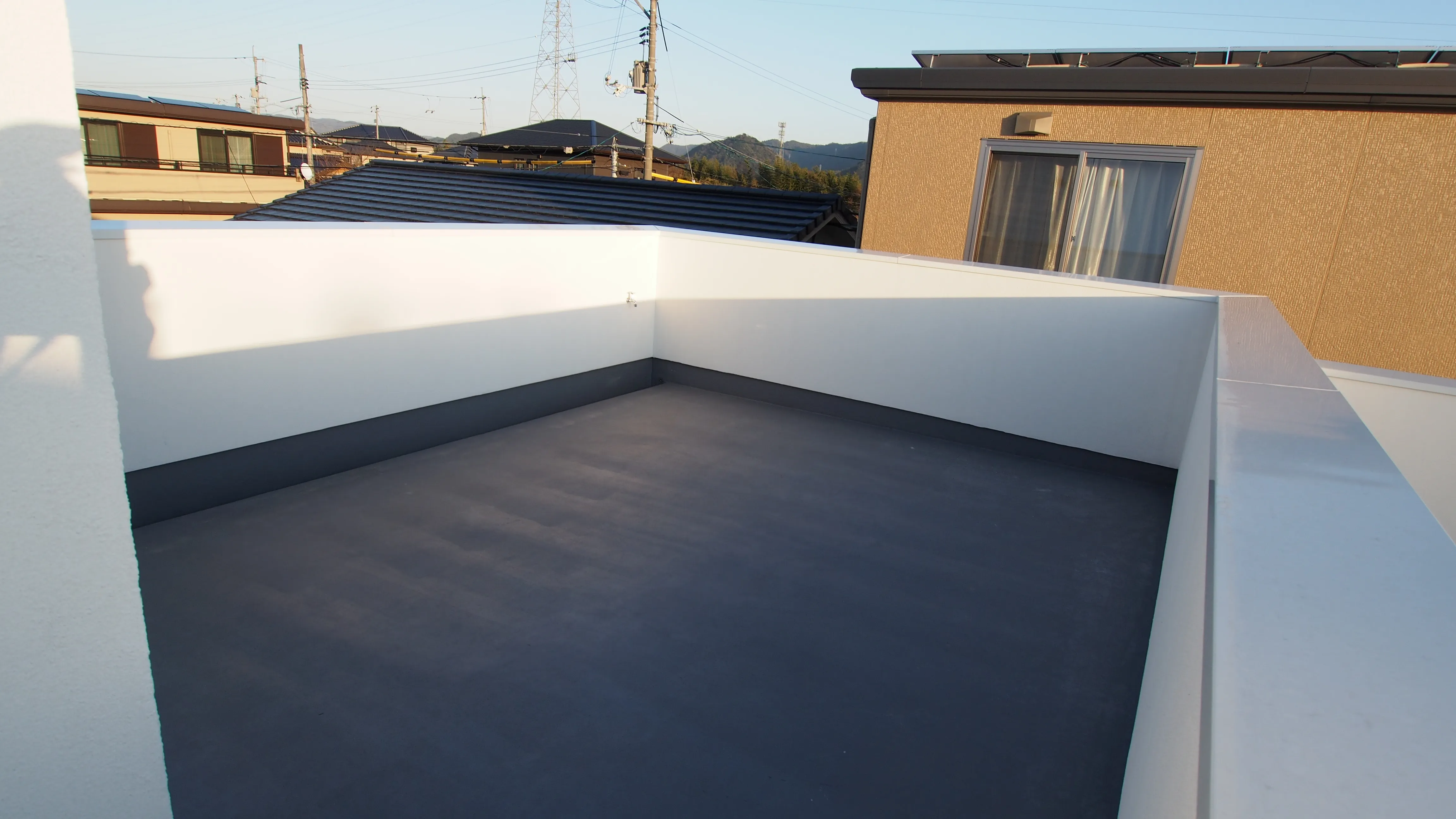 -ルーフバルコニー- 中庭からデッキのバルコニーを上った先にあるルーフバルコニー。様々に場所を変え、いろいろな楽しみ方を持つ家。
