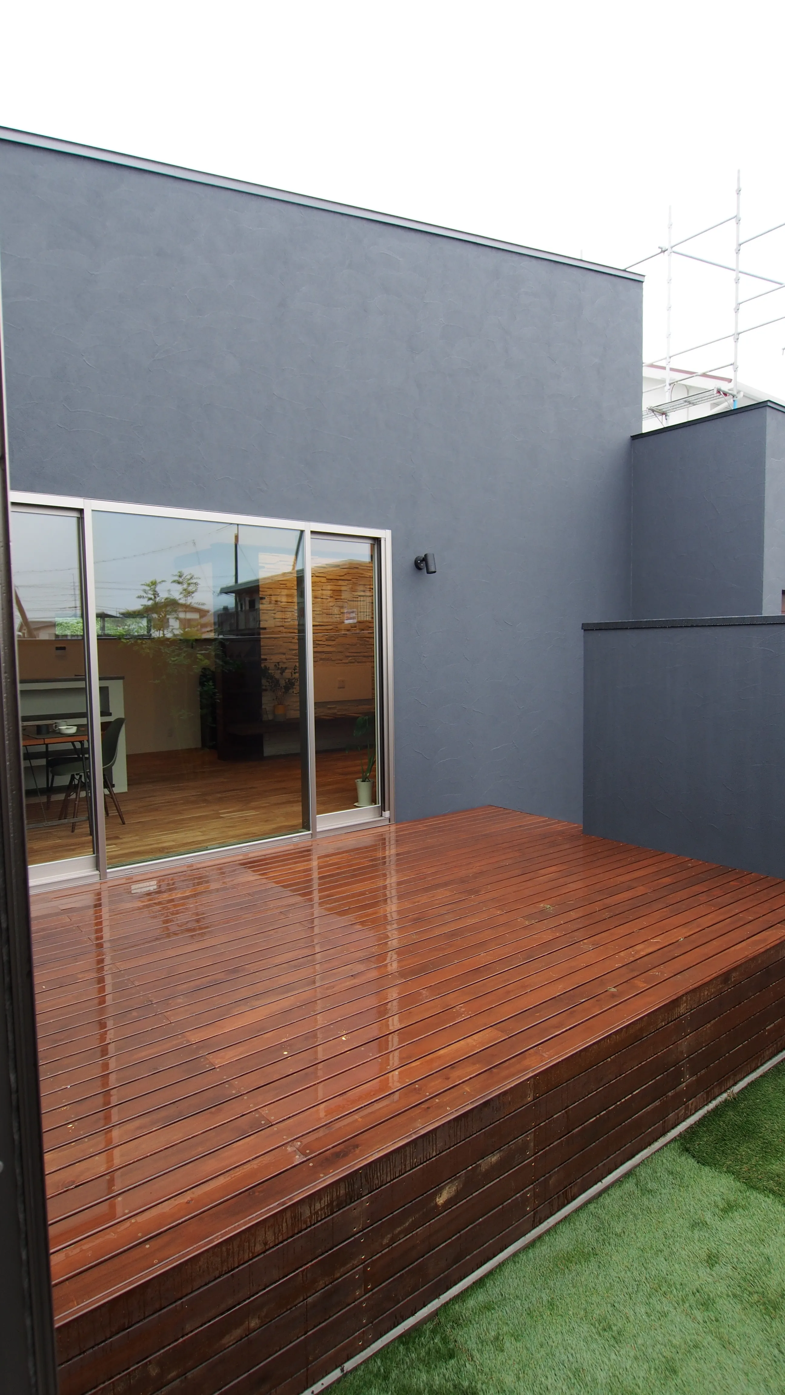 -プライベートガーデン- 新興住宅地でありながら、人目を気にせず過ごせるプライベートガーデン。 リビングを延長するデッキと芝生の庭で開放的に過ごせるよう計画。庭から直接外に出られる動線も嬉しい。
