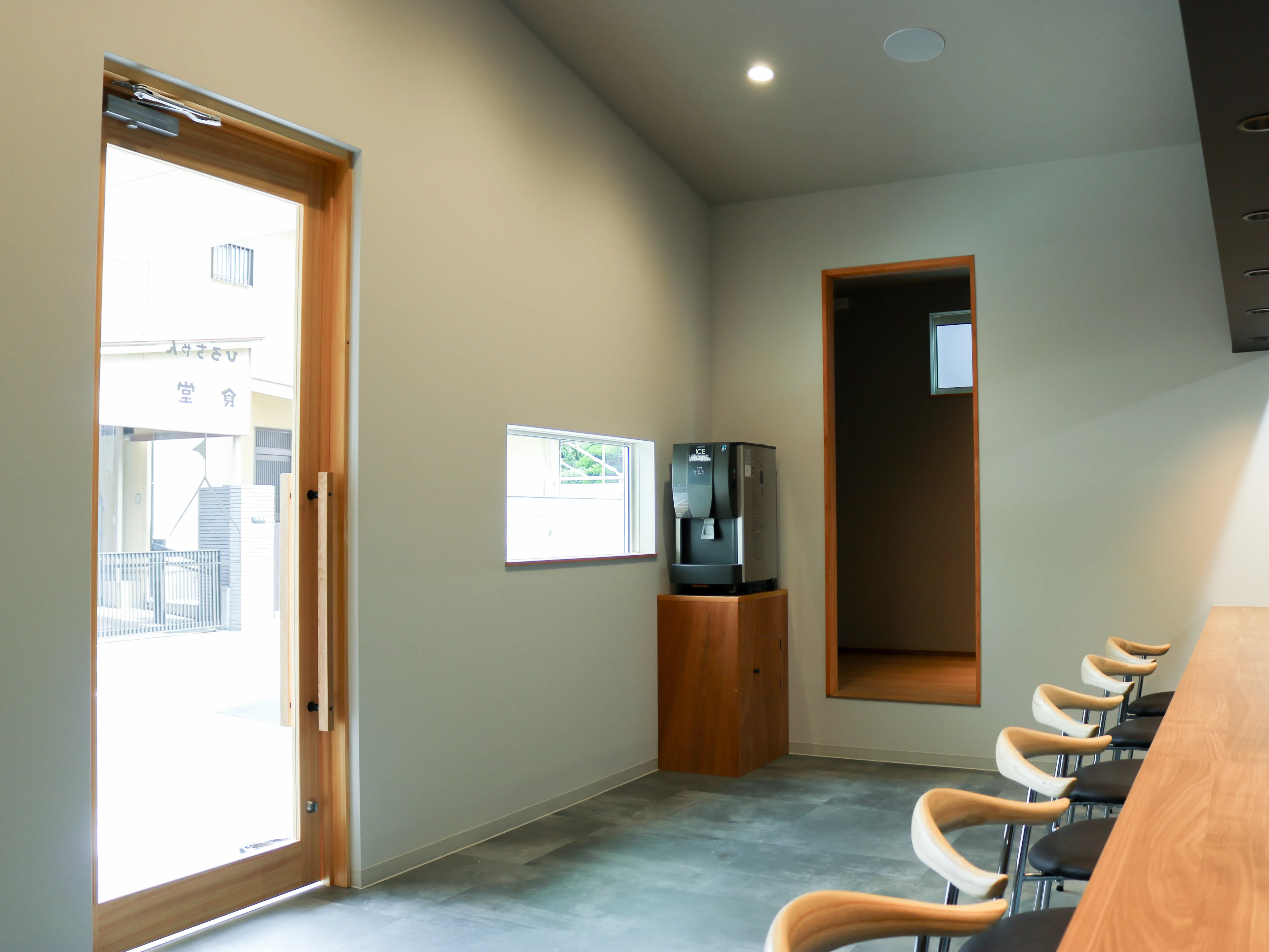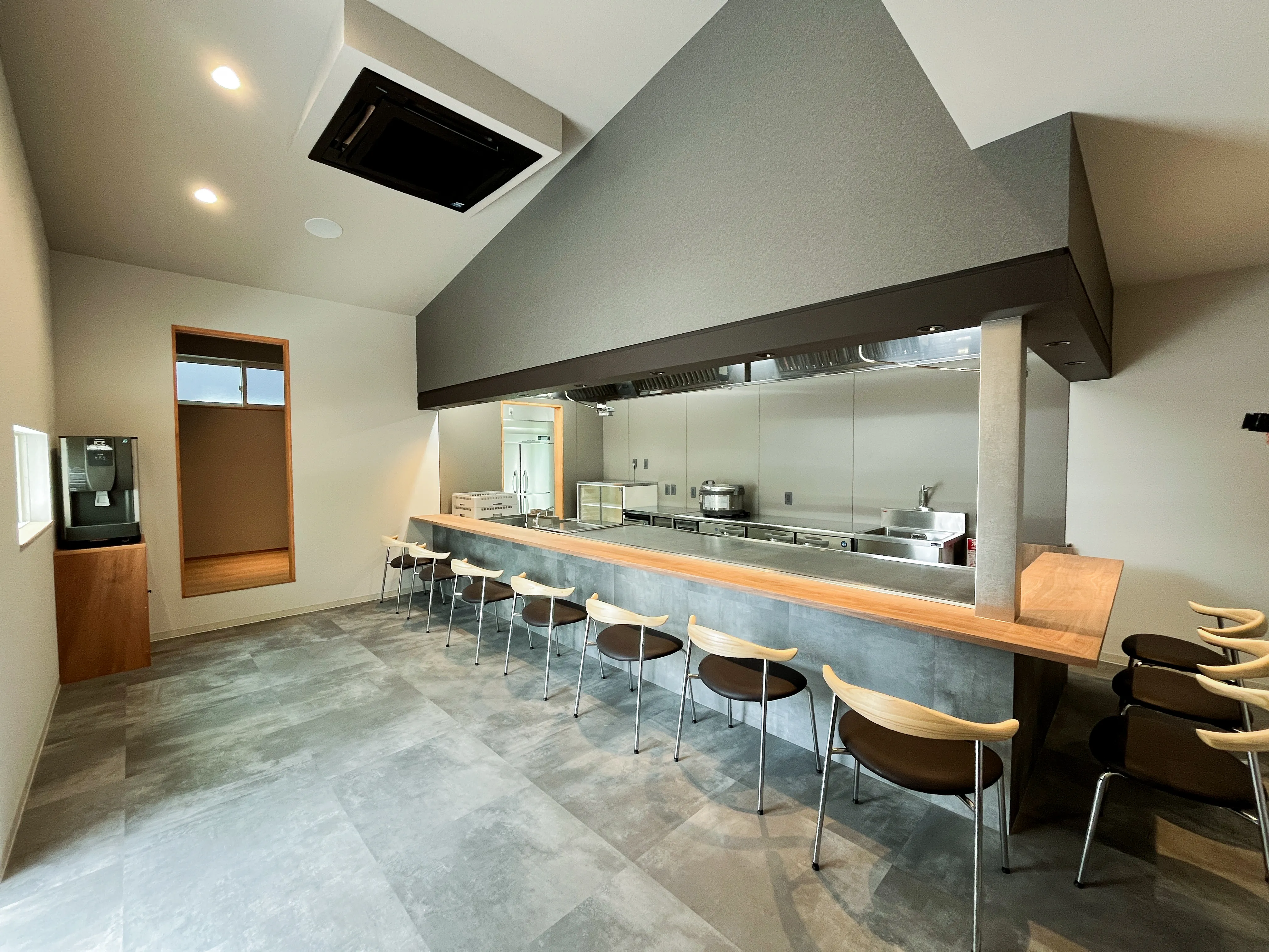 移転リニューアルオープンした鉄板焼き食堂。 誰からも親しまれるお店にしたいという店主の想いの込められた 調和のとれたシームレスデザインの鉄板焼き食堂が完成しました。
