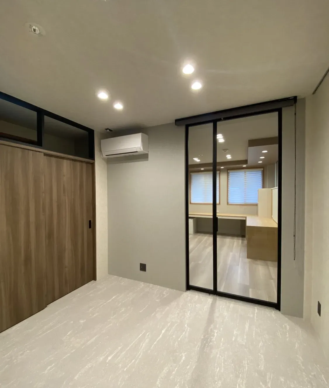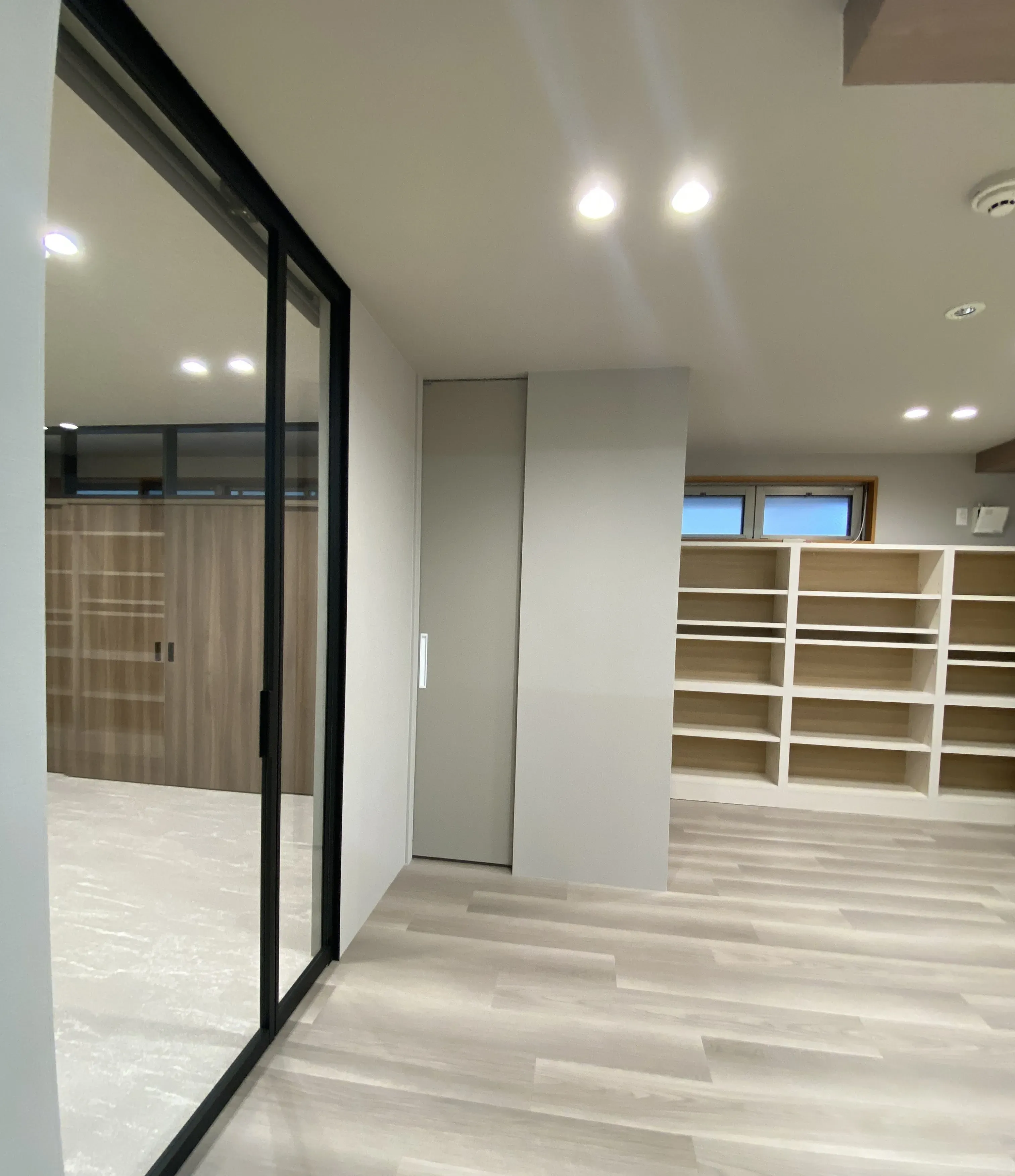 木目と白で明るくまとめ、かわいく上品に。 たくさんの書棚と広めのクローゼットにスッキリ収納も。 ガラス建具がトレンド感を演出しながら、空間に奥行を感じさせる。 濃い色の木目で重厚感のあるシックな空間に。