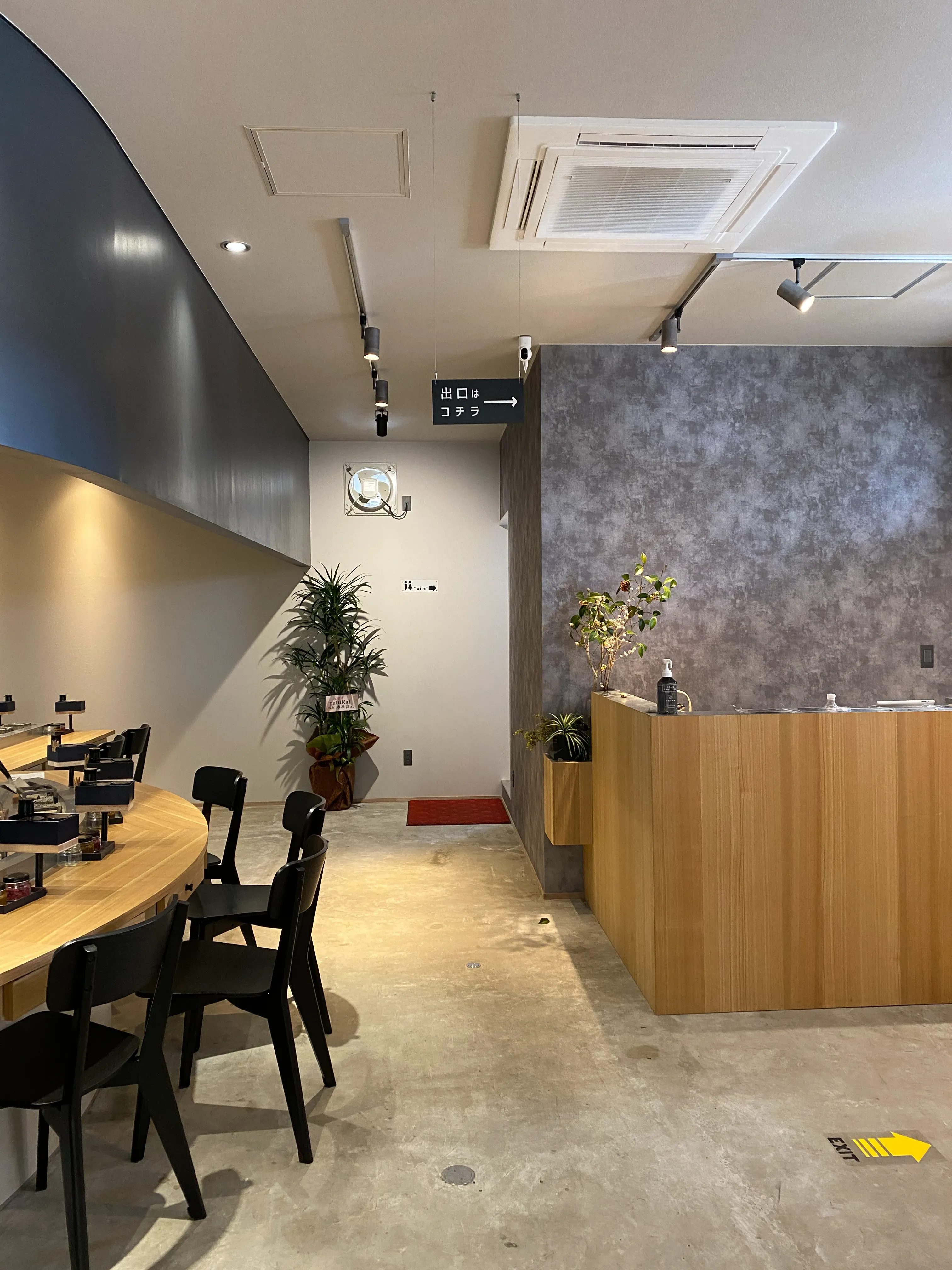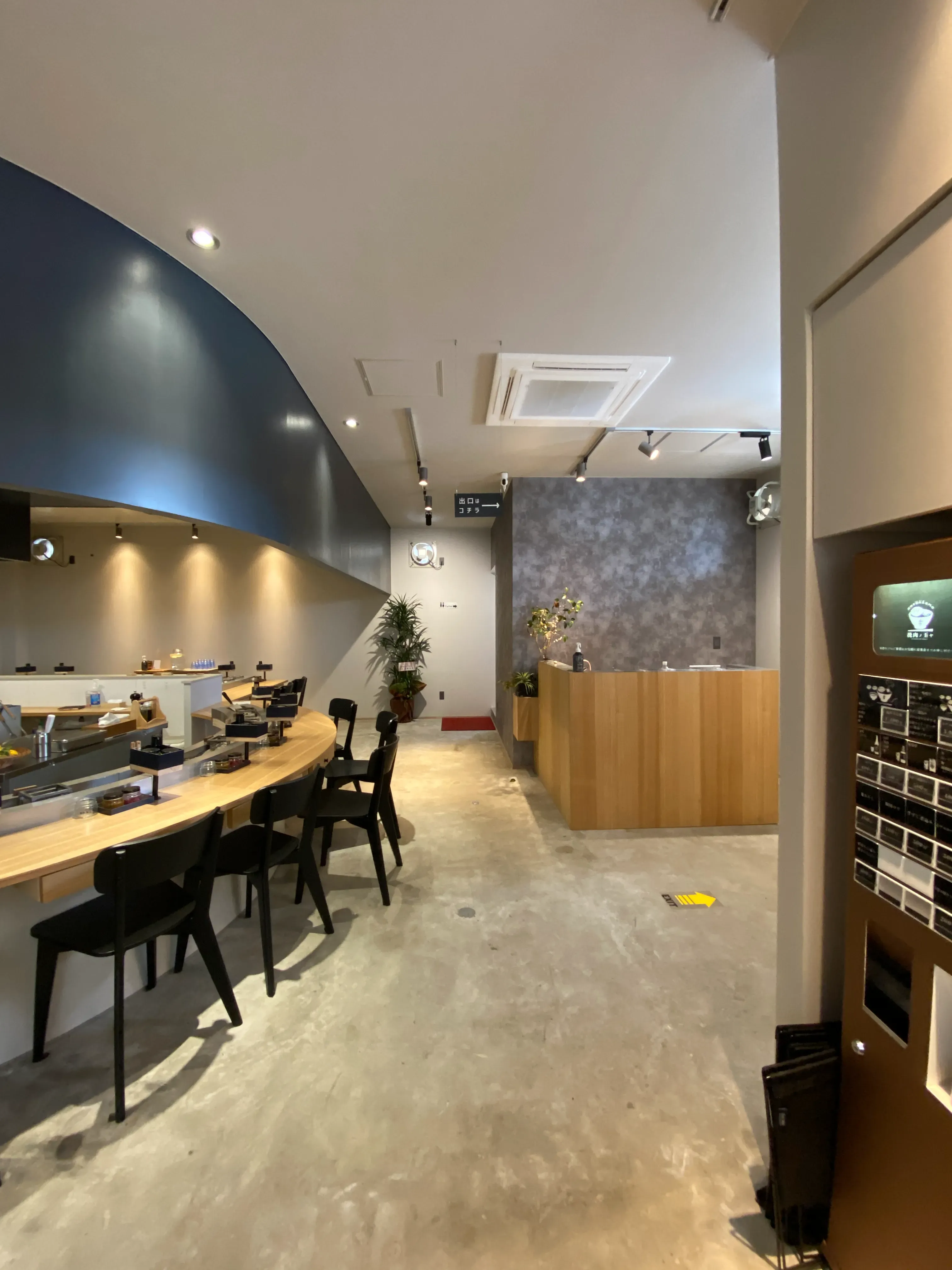 国道9号線沿い、湯田中学校横の炭火焼きハンバーグ店。 お店は舞台。お客様は観客。 待っている時間さえも楽しんでもらいたい。 お施主様のその想いを演出しました。 扉を開けると、香ばしさ漂う。 舞台さながらのRカウンターがお客様をお待ちします。