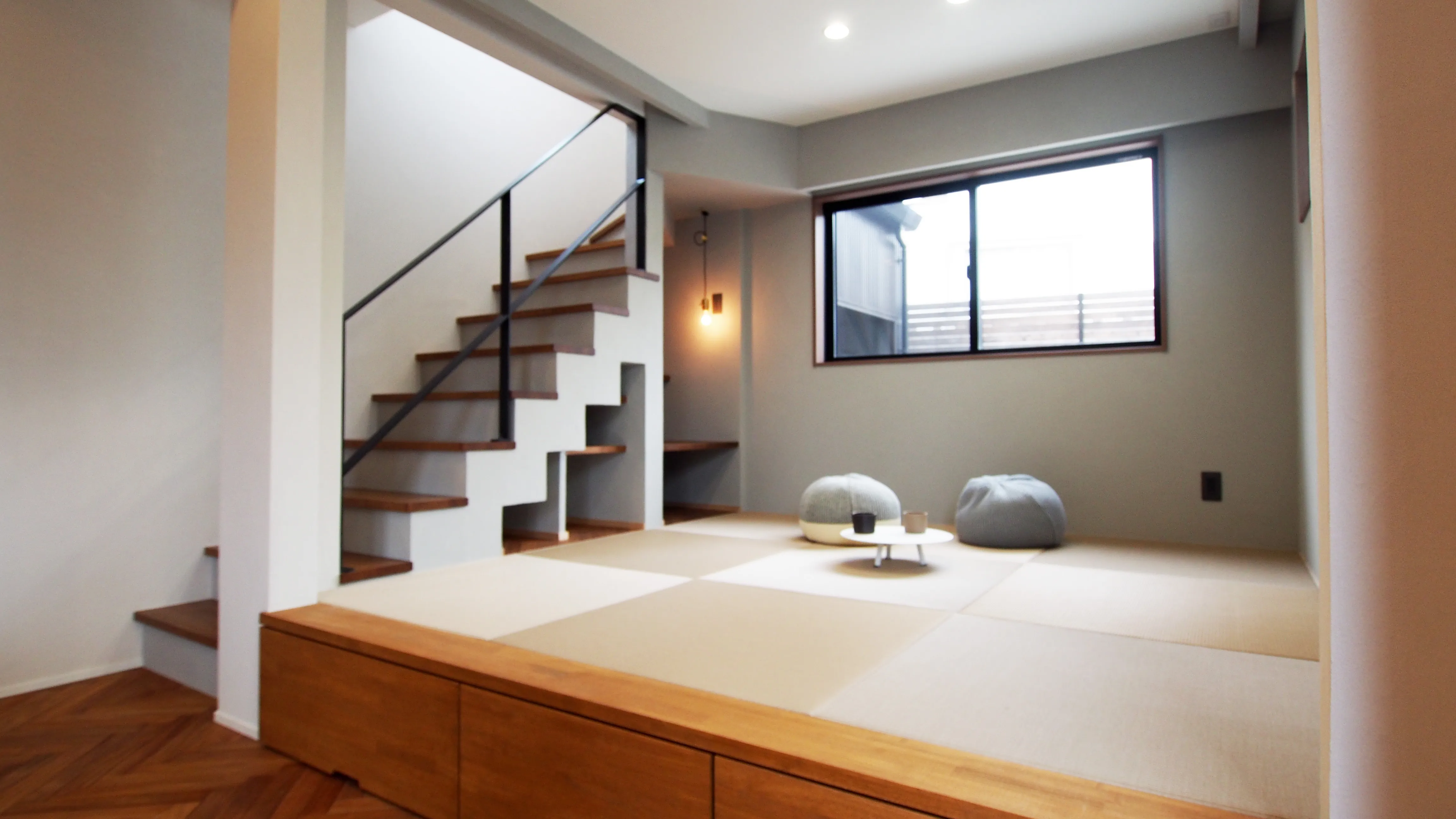小上がりになった和室が開放的なLDKと一体化し、同じ空間に居ながら、それぞれの目的に合った、落ち着ける場所を用意した。