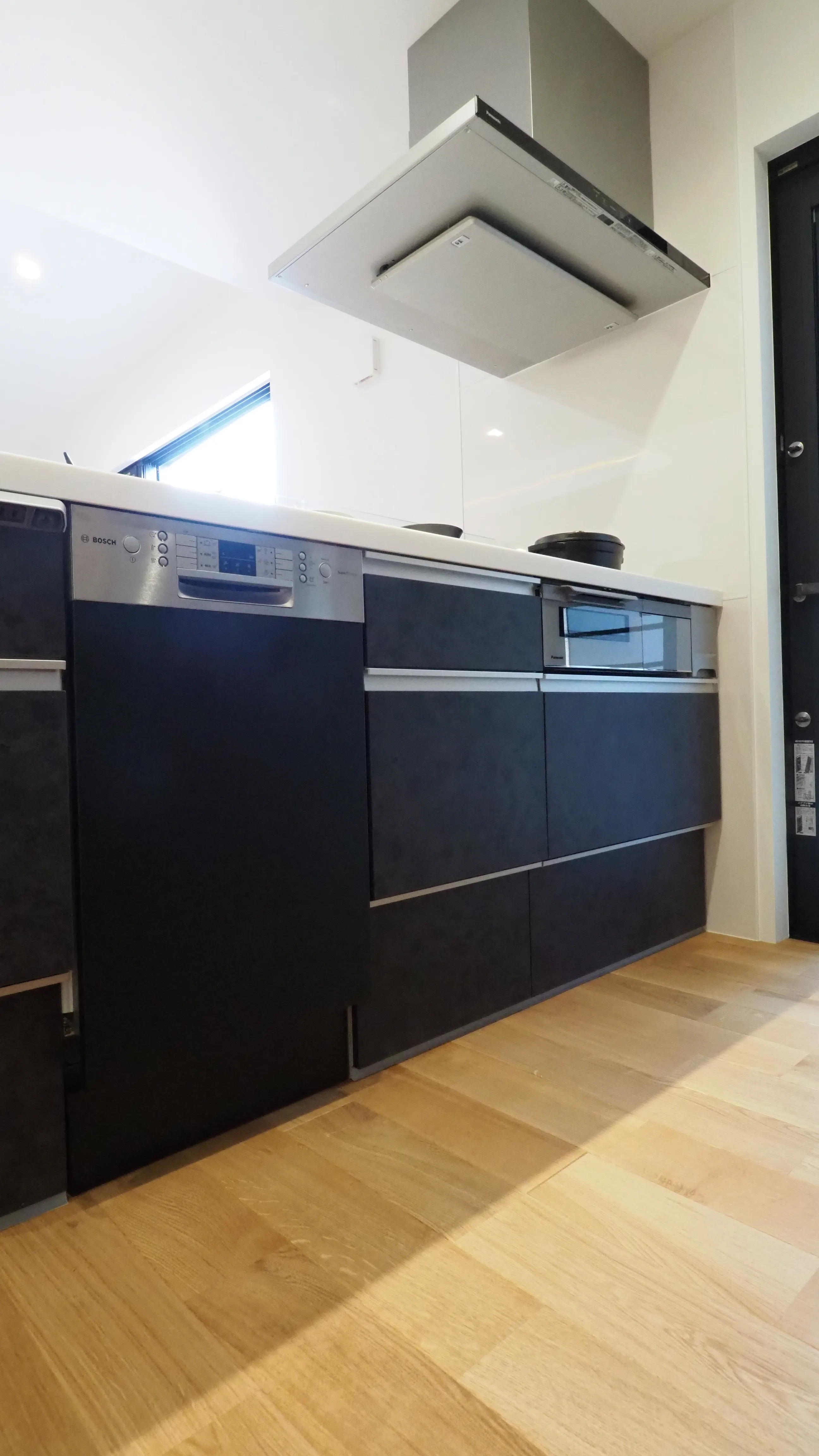 -こだわりの食洗機- メーカーキッチンに導入した海外製食洗機。フロントオープン型の仕様で、大容量の食器が洗浄可能な万能家事ツール。 朝~夜の分をまとめて洗浄できる日も。