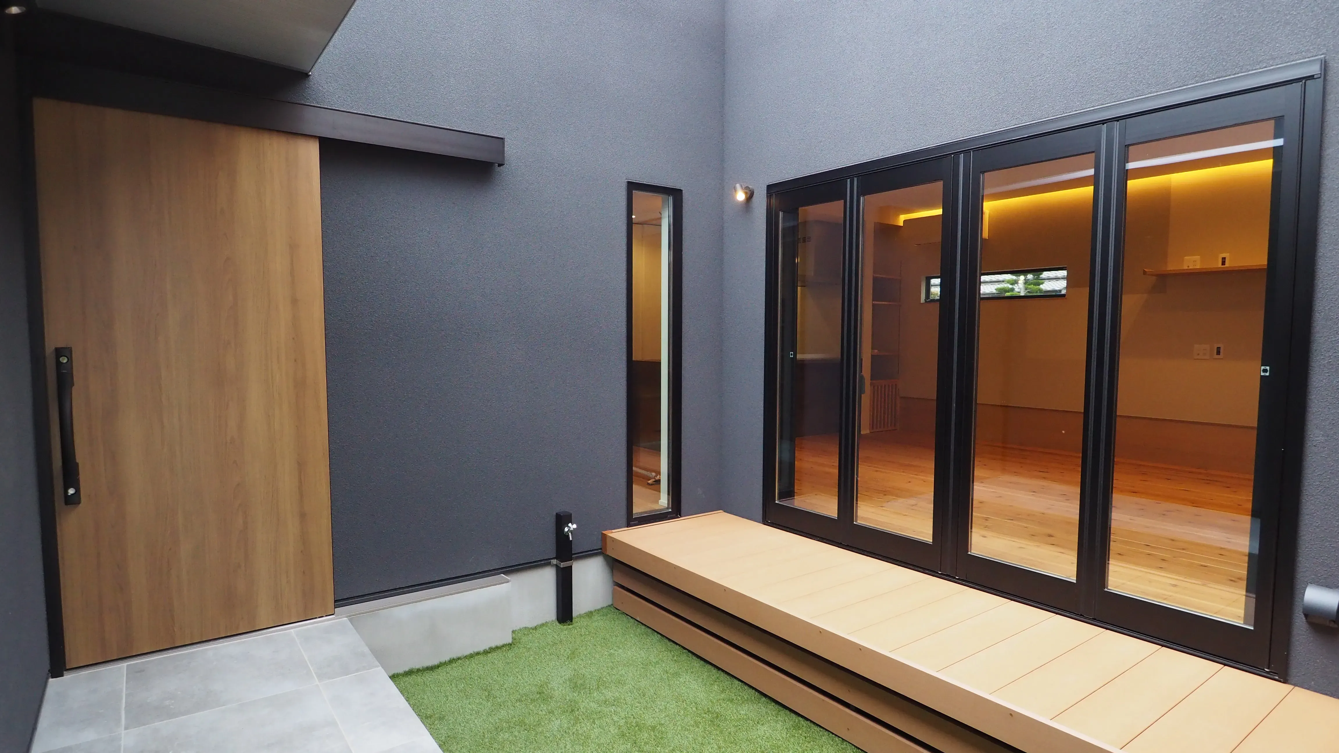 -Atrium- 四方を囲み、プライベートを確保した中庭。デッキに腰かけてのんびり。至福の時間を過ごせます。