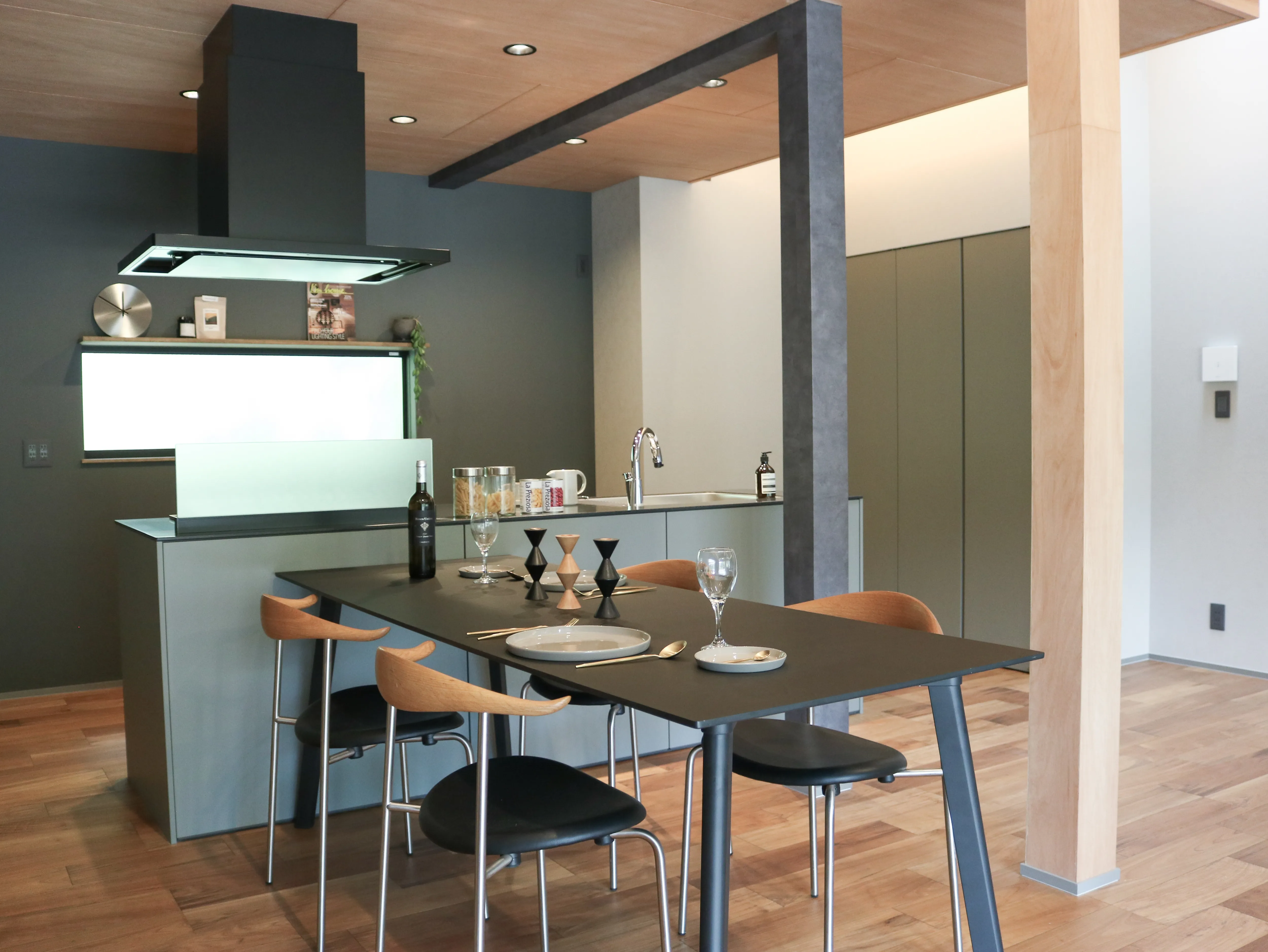 -Kitchen- シンプルなアイランドキッチンはお部屋の色味に合わせてシックに。 不要なものはそぎ落としスタイリッシュなデザインに。