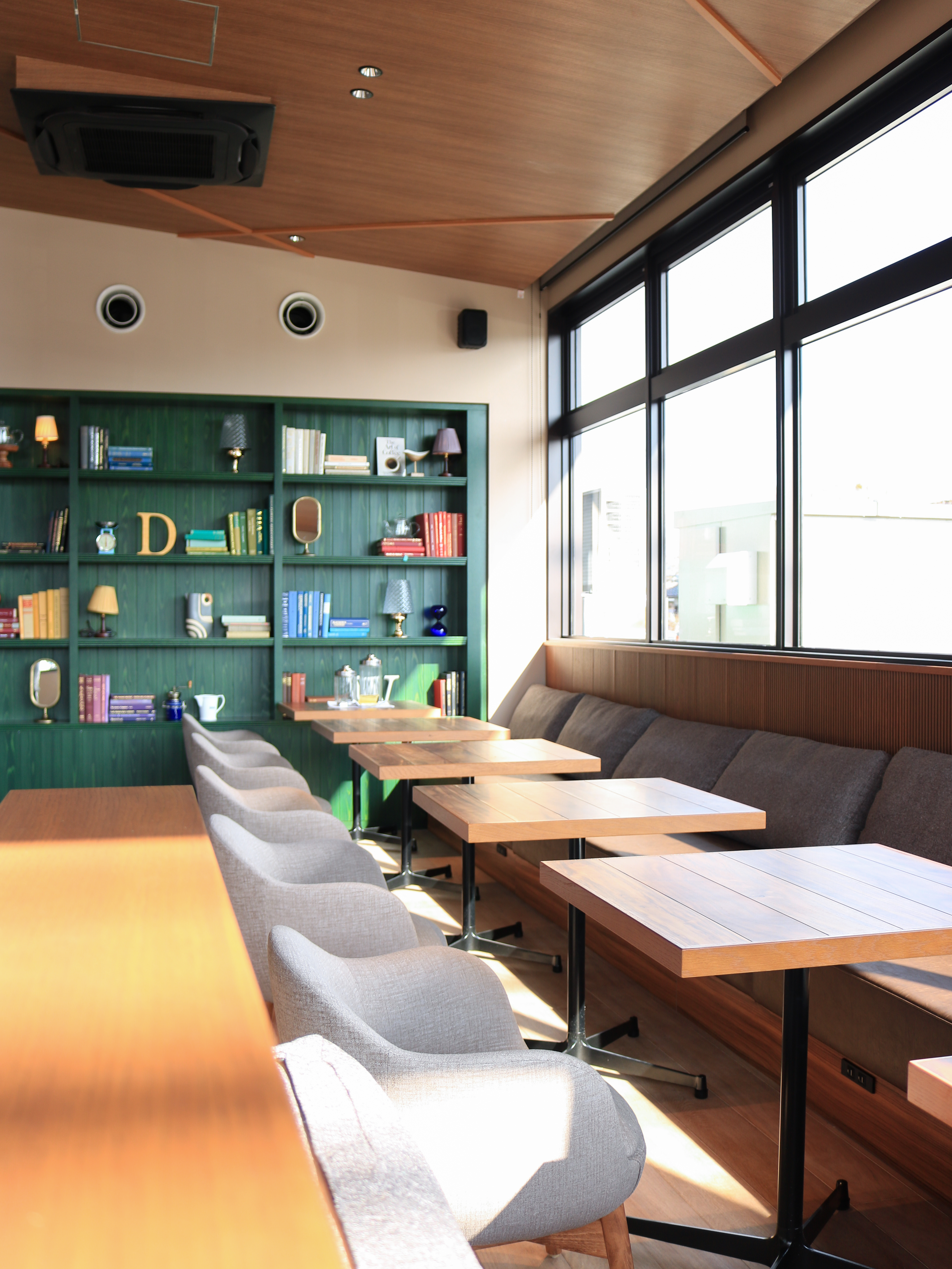 - Terrace seats - テラス席まで繋がるラインが空間にリズムと広がり 空間に一体感と奥行を生み出します。