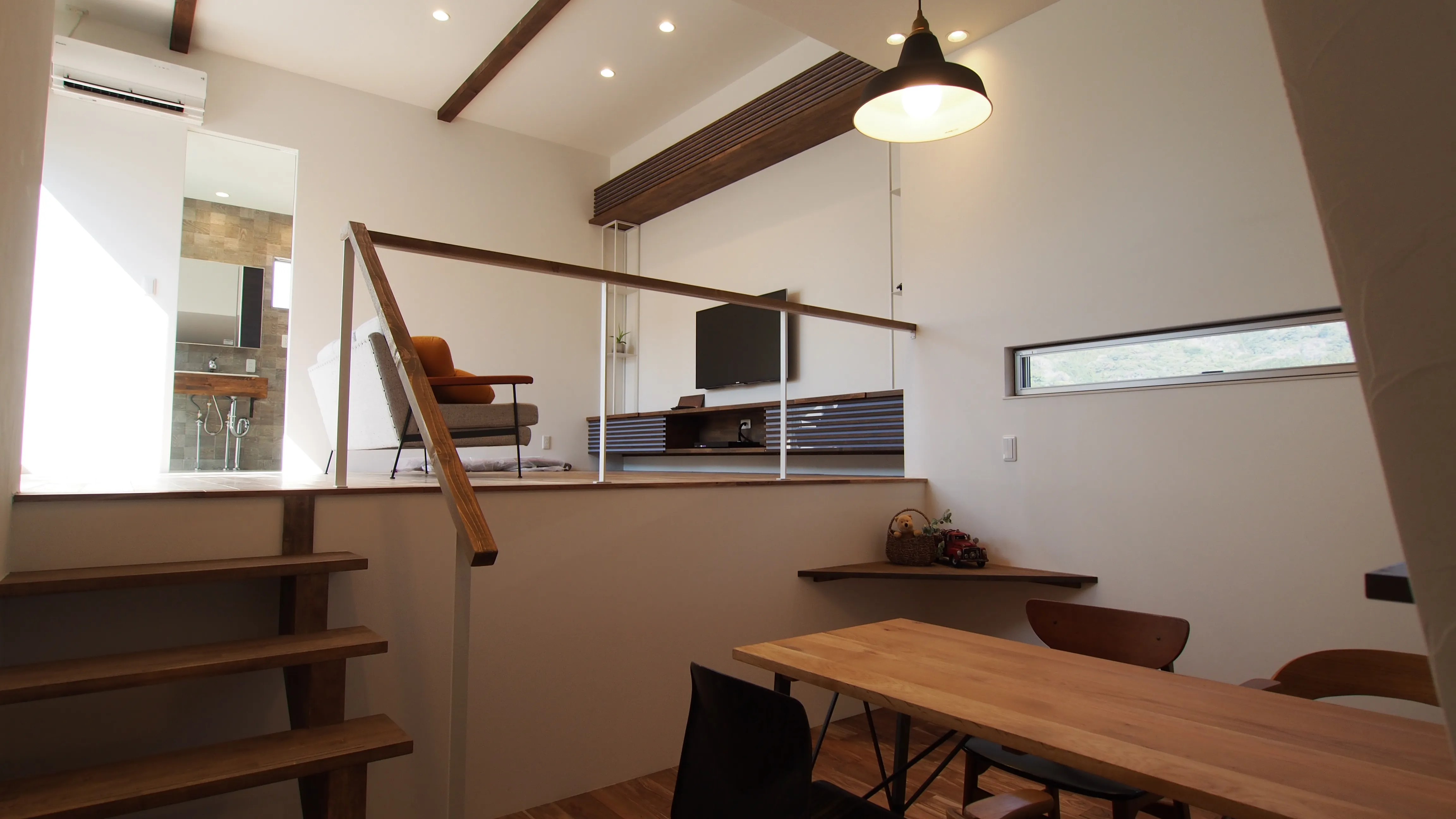 -スキップフロア- パブリックスペースからセミパブリックスペース、プライベートスペースへと小さなステップでゾーニング。