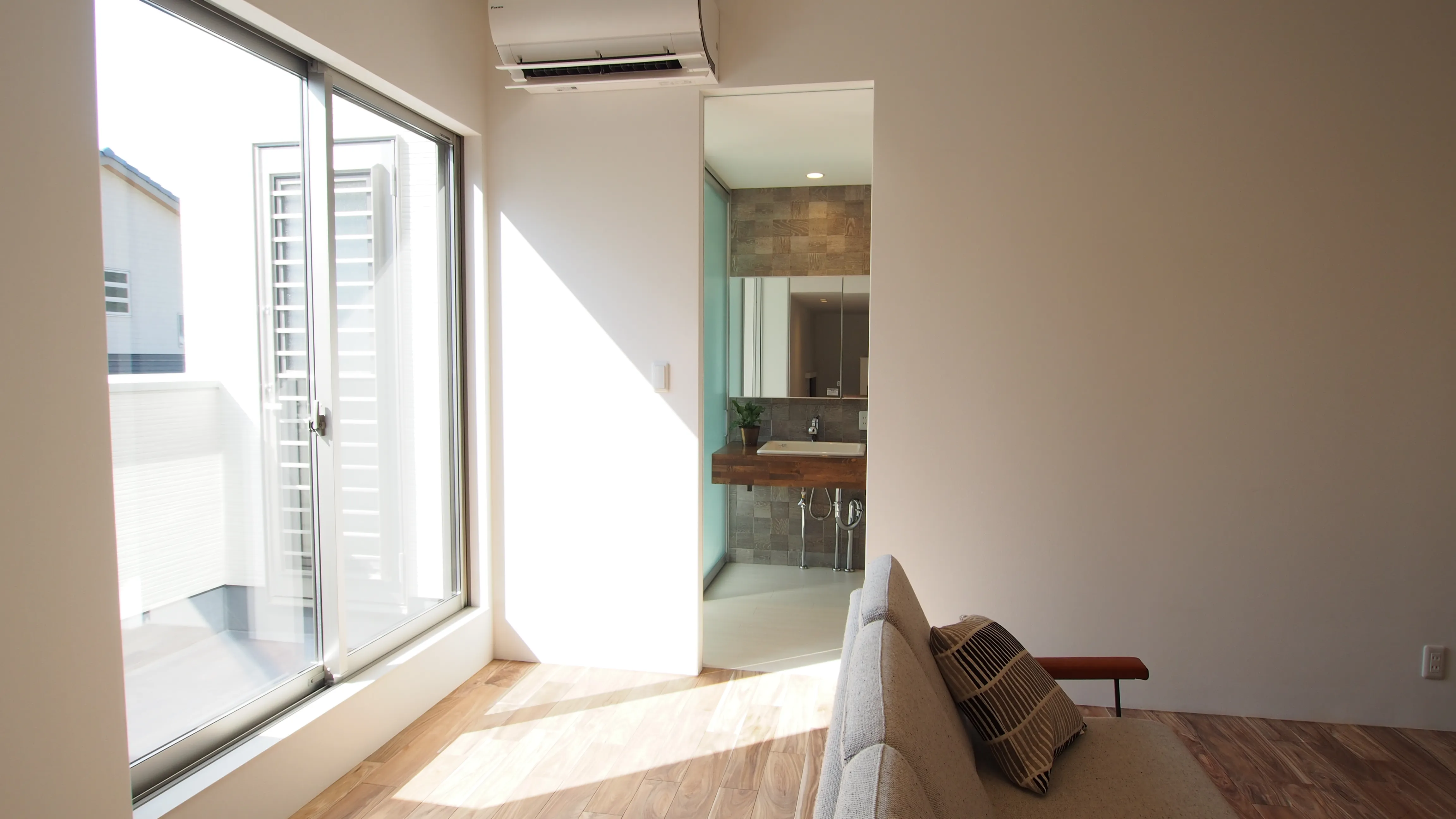 -ゲストルーム- 2層目にゲストルームを設け、プライベートスペースと距離を確保。それぞれが気兼ねなく過ごせる距離をさりげなく構築。